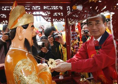 臺(tái)灣“立法院長(zhǎng)”王金平以裔孫身份敬獻(xiàn)金牌迎駕