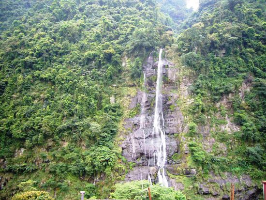 烏來瀑布高約80公尺、寬10公尺,遠望如白練凌空,瀑至中段,因激石而飛散成千百細流,續(xù)又合成巨流,最后則奔騰澎湃地匯成一泓潭水。臺車站附近的觀瀑臺為欣賞瀑布的最佳地點,炎日下,置身其中沁人心脾,舒暢無比。