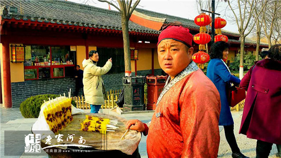 小路口上,一位身著宋服的兄弟在賣切糕,雖然剛吃過(guò)飯,可忍不住還是要買了吃!這切糕做的有講究,黍米面里面加上用白糖蜂蜜煨出來(lái)的紅棗。糯糯的,筋道,有嚼頭,透著面香棗甜,這是真正的童年味道!……