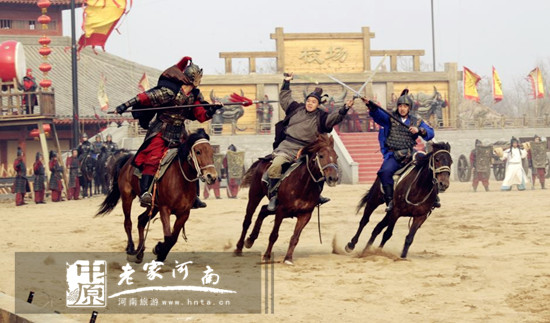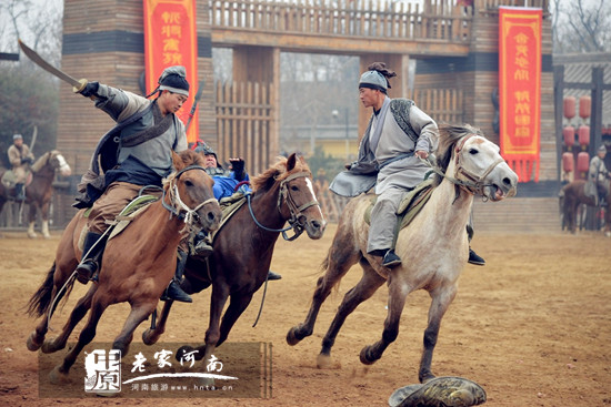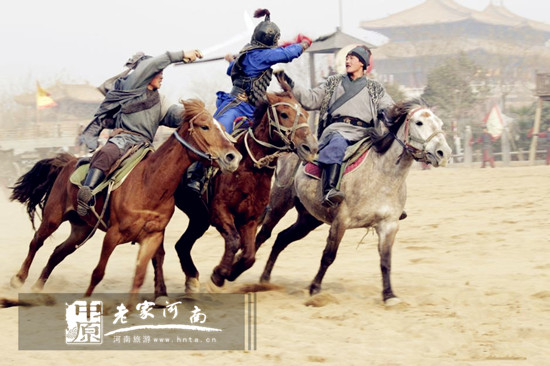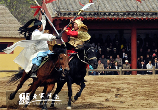 清明上河園里最具觀賞性的節(jié)目當數(shù)“岳飛槍挑小梁王”了。