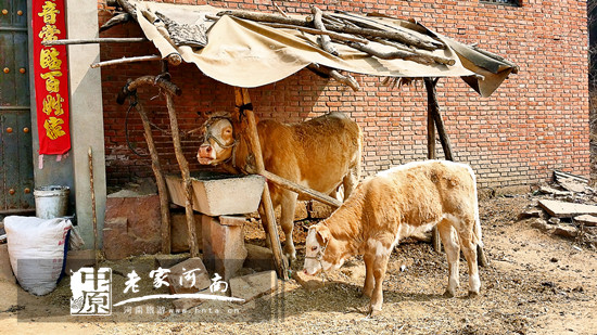 旁邊牛棚里有兩頭牛,牛媽媽和孩子。慢慢的吃著草,喝著水,一幅慵懶的樣子。和老人聊天知道,村里的年輕人都出去打工了,有的已經(jīng)在縣里鎮(zhèn)上買房了。如今的村里只剩下老人,孩子也要到鎮(zhèn)上縣上讀書(shū)了,好多房子空無(wú)一人。我們?cè)诖謇镛D(zhuǎn)轉(zhuǎn),確實(shí)如此。老房子基本沒(méi)人住,年久失修……