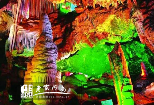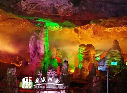 穿過碧玉螺便是第四景區(qū)洞天河,長流不息的地下河從石縫中奔涌而出,不知來源不知去向,水聲震人耳膜,景區(qū)便以此得名。這條河日流量達(dá)600噸,經(jīng)河南地質(zhì)研究所取樣化驗(yàn),河水中富含鐵、鉀、鈣、鋅、鎂等20多種對人體有益的微量元素,是一種優(yōu)質(zhì)礦泉水。由第一段鐵梯拾級而上,便能看到左側(cè)洞壁上布滿了雪花狀的石花,潔白透亮、晶瑩,叫它雪花石。距雪花石2米的路右側(cè)是面積約3平方米的水平池,長年不受旱澇影響,水位始終保持適中,不漲不落而得名,是洞中奇景之一。