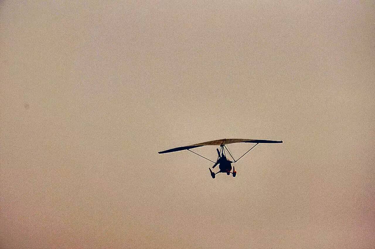這個“動力三角翼”每次只能坐兩個人,飛行員在前面,乘客坐后面。當(dāng)發(fā)動機(jī)打火一沖向上,翱翔天空,俯瞰中原大地,一條河流,一片綠油油的莊稼地。很快就飛到了少林寺的上空,寺廟的房頂清晰可見。……