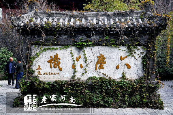 青石板鋪就的石臺階,我們拾階而上。青磚白墻朱紅門,是隋唐建筑風(fēng)格。