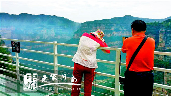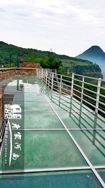 看了才知道,原來(lái)是在懸崖峭壁上搭建的玻璃地面的觀景臺(tái),真的很平坦啊!站在上面即可看到腳下的萬(wàn)丈深淵!我戰(zhàn)戰(zhàn)兢兢,有點(diǎn)心驚肉跳的踏上玻璃地面!每往前走一步心里緊張加一分,看來(lái)我真的是有恐高癥!……