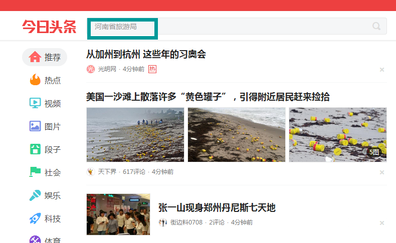 第一步:百度搜索“今日頭條”,或輸入網(wǎng)址www.toutiao.com,進(jìn)入今日頭條推薦頁(yè),即主頁(yè)面。