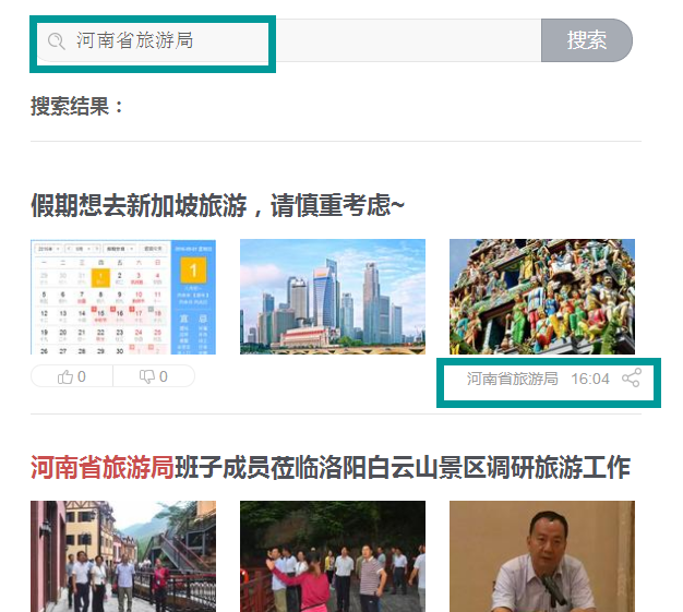 第三步:回車搜索,出現(xiàn)省旅游局頭條號(hào)發(fā)布的新聞,請(qǐng)認(rèn)準(zhǔn)新聞?dòng)蚁陆穷^條號(hào)名稱,如下: