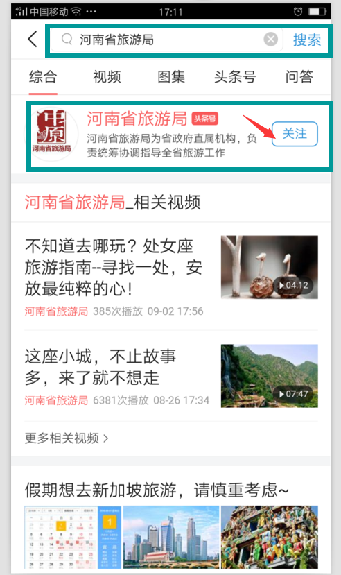 綜上完成省旅游局頭條號(hào)訂閱關(guān)注。