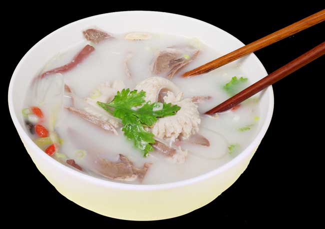羊肉湯是中華傳統(tǒng)經(jīng)典名吃。 主要將羊骨頭一起投入大鍋里熬湯,再將切成砣的新鮮羊肉與清洗干凈的羊雜一起投入湯鍋中煮。煮熟后撈起來瀝干,然后切成薄片放入滾開水里一氽,再倒入湯碗中,沖入滾燙雪白香甜的羊湯水,撒上碧綠的蔥花,一碗熱氣騰騰,香氣四溢的羊肉湯就做成了。配上一個(gè)由辣椒油、花椒面、鹽、味精等調(diào)和就成羊肉湯。