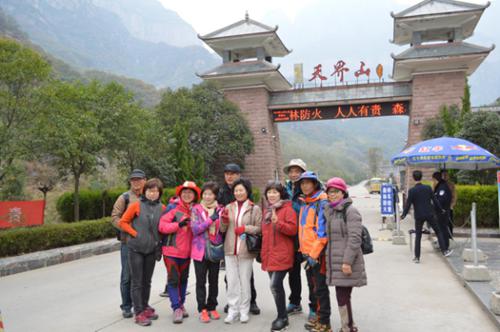 中外游客冒著涼爽的秋風(fēng),走進(jìn)天界山,去體驗(yàn)深秋的精彩。