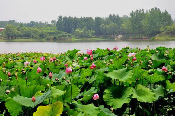 “鄧湖蓮歌”這一景在原郾城縣西南15公里之鄧襄鄉(xiāng),即現(xiàn)在召陵區(qū)鄧襄鎮(zhèn)。據(jù)《福嚴(yán)寺碑記》載:春秋時(shí)期,鄧侯封王鄧襄,筑寨而居,名曰鄧襄寨。寨的東北隅有一天然湖泊,稱為鄧湖。湖中有一高臺(tái),臺(tái)上有一座精美的建筑,是鄧侯游玩之所。湖內(nèi)云影波光,蓮荷搖弋,每逢盛夏,滿湖的荷花被風(fēng)一吹,互相碰撞,發(fā)出響聲,如金鐘玉佩,悅耳動(dòng)聽(tīng),“鄧湖蓮歌”便由此而來(lái)。楊祥元有詩(shī)贊曰:石亂云深不記年,誰(shuí)將精舍建臺(tái)巔。鄧侯歌舞無(wú)從問(wèn),湖內(nèi)香分茂叔蓮。(注:茂叔是北宋哲學(xué)家周敦頤的字,他寫(xiě)的散文《愛(ài)蓮說(shuō)》千古傳頌,后人稱高雅的蓮花為茂叔蓮)。