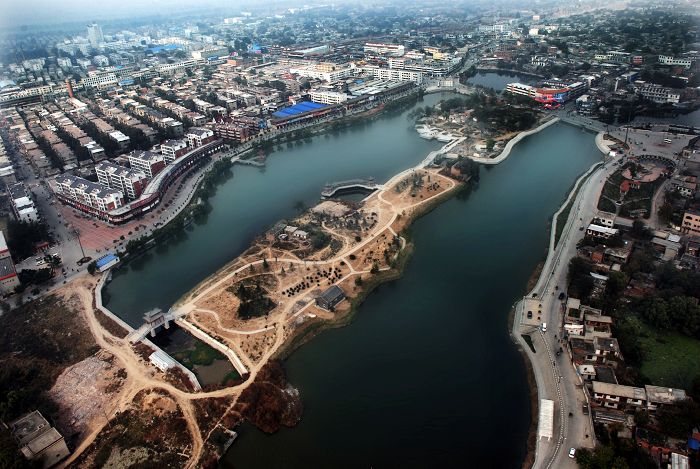 衛(wèi)輝古城遵循傳統(tǒng)城市空間格局的特點,依照禮制思想布局,城內(nèi)街巷呈方格網(wǎng)狀,設(shè)定鼓樓是城中的制高點和視覺景觀的中心。后來經(jīng)過擴建,形成了外有護城河,內(nèi)有玉帶河的“日”字形環(huán)城水系,可謂別具一格。