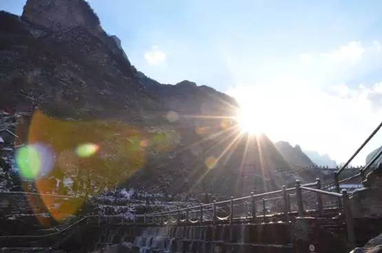 無限風(fēng)光在險峰,走在曲徑通幽古道上,白色的“花瓣”一路伴隨我們,樹枝上結(jié)滿了一身樹花,在陽光下亮晶晶的格外耀眼,如同登山入仙。似如一幅詩情畫意的冬韻圖。