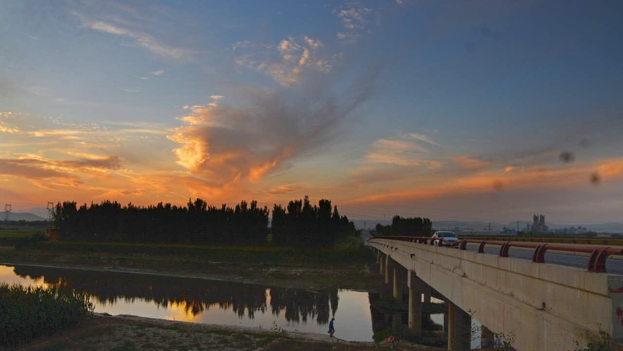 霧霾褪去,牧野大地喜迎晴空晚霞,夕陽西下之時(shí),天空中云霞的形狀變化多端,尤其是云霞的顏色,變化極多。滿天的云霞一會(huì)兒像百合色的團(tuán)團(tuán)棉花,一會(huì)兒像金色的波浪。最有趣的是那兩朵云:一朵像一抹半灰半紅的胭脂,一朵像紫檀色的雞冠花,整個(gè)天空都顯得色彩繽紛。變化無窮的云霞,使天空充滿了瑰奇的神秘色彩。