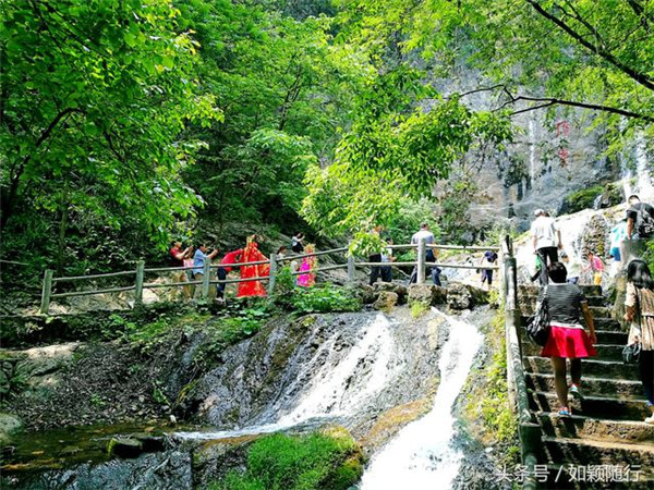 有了瀑布流淌,不少人穿上古裝戲服拍照呢。