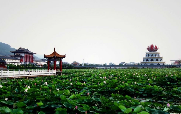 宜陽縣有集蓮花觀賞、溫泉養(yǎng)生、水上樂園、餐飲酒店于一體的靈山蓮花公園,北依洛河,南臨靈山寺。晚間來此散步,看著匯集了幾十種珍貴蓮花品種的荷花池與庭院景色相應出一幅“荷塘月色”的美妙意境,不勝美哉。