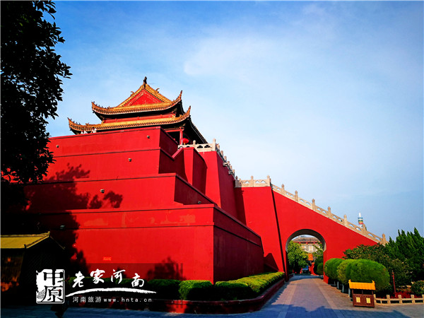 朱紅色圓形的拱門,透過拱門,清晰的看到了龍亭的最高建筑。