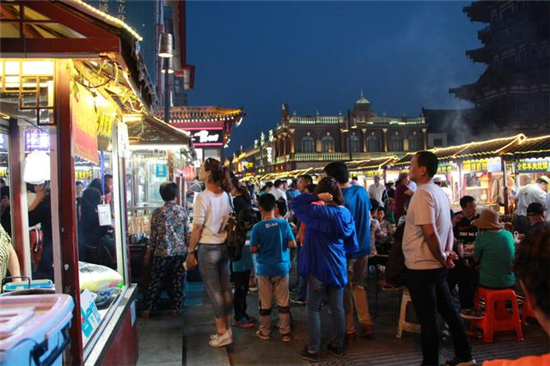“從某種意義上講,夜市火爆也是假日經(jīng)濟(jì)繁榮的一個(gè)象征。各地游客匯聚到古城開封,不僅可以品嘗夜市小吃,還可以領(lǐng)略歷史人文風(fēng)光,這對(duì)提高開封乃至河南的知名度,壯大河南旅游品牌具有非常積極的推動(dòng)作用。”來(lái)自鄭州的游客劉先生分析說(shuō)。