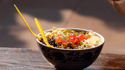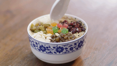 宮廷杏仁茶以藕粉打底,加入紅豆、綠豆、銀耳、杏仁、葡萄干、黑白芝麻……這加料多得數(shù)不過來,吃起來就感覺自己“珠光寶氣”。
