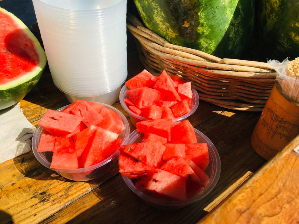 這家生意很好,瓜都是現(xiàn)切現(xiàn)賣的,保證讓大家吃得新鮮。