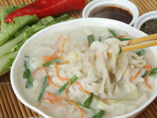 風味推薦:老城西關馬路街“明虎漿面條”里面的“剩漿面條兒”是漿飯中的上品,民諺云:“漿飯熱三遍,拿肉都不換”可見其魅力。