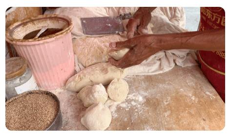 燒餅好不好吃,口感勁不勁道,醒面少不了,但揉搓更是關(guān)鍵。三十年的揉煉,大爺對于力道的掌控,早已稔熟于心。