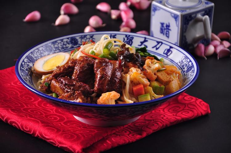 清朝末年,齊氏大刀面的傳人齊東魁看到大家這么熱愛吃大刀面,就在民間大刀面的基礎(chǔ)上大膽地對(duì)其進(jìn)行創(chuàng)新制作。精選優(yōu)質(zhì)面粉、雞蛋清、食鹽、小蘇打等,經(jīng)過人工和成,再經(jīng)過長達(dá)1.6米的搟面杖八搟八推八壓,使面皮猶如白綾,薄至透明顯影,隔面可觀報(bào)紙;然后右手提刀,左手按面,隨著長3尺、寬5寸的大刀的起落,細(xì)如發(fā)絲能穿針、長而不斷、用火一點(diǎn)就著的大刀面就制作而成。水開下面,面條浮起即熟,只用十幾秒鐘,細(xì)如線,晶瑩透明,柔韌滑潤,口感清香爽口,食而不膩的一碗大刀面就出鍋。夏季,用蒜汁、香醋、芝麻醬、小磨油、姜末、蔥花、香油涼拌,營養(yǎng)豐富,清香爽口,味道鮮美;冬季,澆上用魚、蝦肉、大蔥、生姜等名貴調(diào)料,慢火精燉而成的湯汁,醇香可口,味道宜人。
