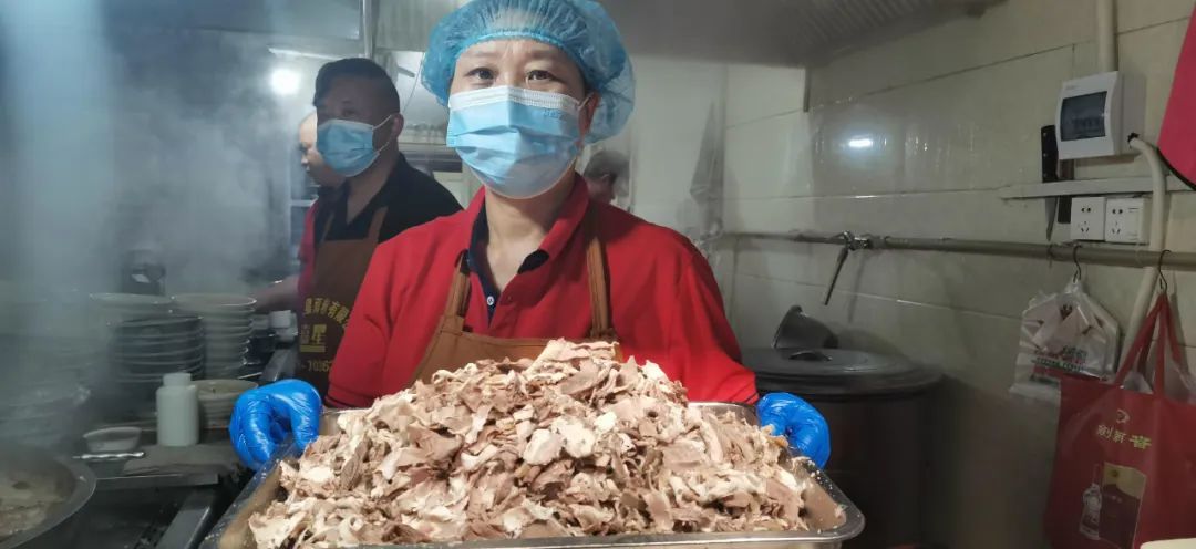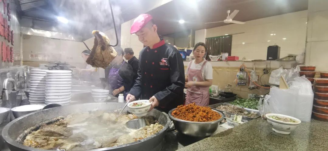 他和妻子劉巧敏每天早晨5點(diǎn)開(kāi)始忙碌,把羊肉配以草果、桂皮、肉桂、八角、茴香、胡椒、枸杞等十余種作料進(jìn)行熬制,待高湯沸騰時(shí),食客們也陸續(xù)到來(lái)。