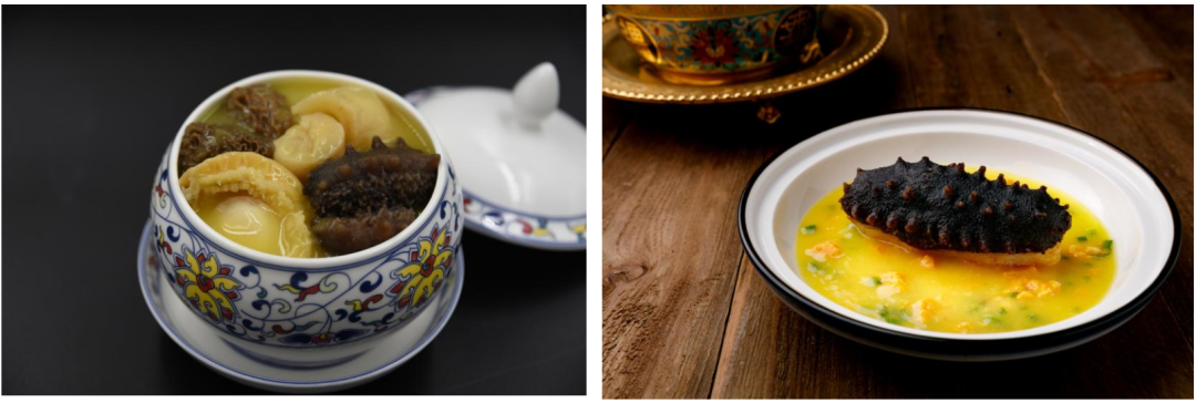 清湯酸辣烏魚(yú)蛋湯、國(guó)宴佛跳墻、蝦仁焙面、托燒豆腐焙面、糟溜雞仁、鐵鍋漲蛋、花雕蟹汁脆皮海參、鍋燒肘子、芥焗黃金肉、松仁酥肉。