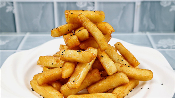 成品色澤鮮艷,外焦里嫩,香甜可口,因糖汁中有水,饃炸好后要放在水里激一下,所以叫水激饃。