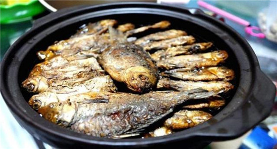 而它需要燒煮的時(shí)間比較長(zhǎng)。炒鍋或陶罐放到火上,鍋底放一層大蔥,在上面放入適量的姜,八角,小茴香,花椒,辣椒,再在上面放一層炸好的魚,在魚上面,再放上一層大蔥,再放一層魚,如此循環(huán),直至放完。工序如此復(fù)雜,味道自然絕妙!