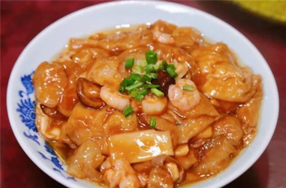 三鮮燴面是商丘極具代表性的美食,有著特殊的制作工藝,以鮮嫩的魚肉、雞肉和蔬菜為主要原料,燴制而成。這燴面口感特別筋道,連湯汁的味道都特別鮮美,是那種吃了連湯都剩不下的面食。