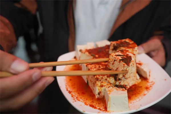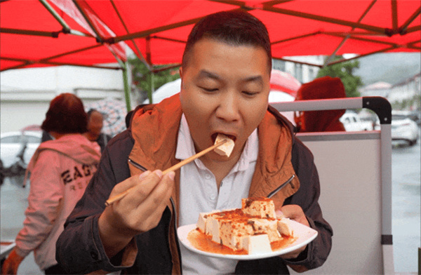 “賣豆腐啦~”剛到三川鎮(zhèn)街頭,就可以聽(tīng)見(jiàn)一聲聲的叫賣聲。大老遠(yuǎn)看見(jiàn)一堆堆人群圍繞著一排排的豆腐攤位,旁邊或蹲著或站著,人手一盤熱氣騰騰的豆腐,正在往嘴里“炫”。