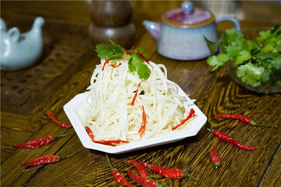 “登封芥絲”被譽(yù)為“嵩山第一菜”,選自中岳嵩山特殊氣候下的優(yōu)質(zhì)圓葉芥菜(芥疙瘩),經(jīng)獨特的腌制方法和傳統(tǒng)工藝,采用罐裝和真空包裝精制而成的鮮美佳肴。