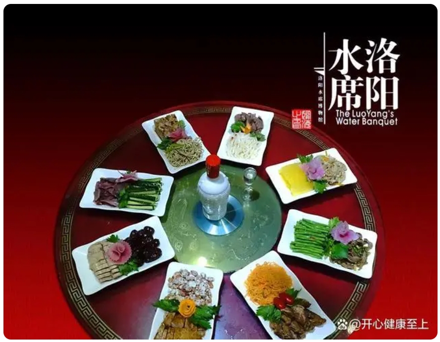 洛陽水席是洛陽最具代表性的飲食文化,也是洛陽人待客的最高禮儀。水席的由來與洛陽地處黃河、伊河、洛河三水之間有關(guān),水源充足,魚類豐富。水席的特點(diǎn)是菜品多以魚為主,烹調(diào)方法多樣,口味清鮮,色香味俱全。水席一般分為四道:頭道是開胃菜,如涼拌海蜇、熏魚片等;二道是湯菜,如鯉魚湯、鯽魚湯等;三道是炒菜,如爆炒蝦仁、清炒蓮白等;四道是主食,如水晶包子、荷葉粉蒸肉等。水席的菜品數(shù)量根據(jù)客人的人數(shù)和檔次而定,一般在十幾到幾十道之間。