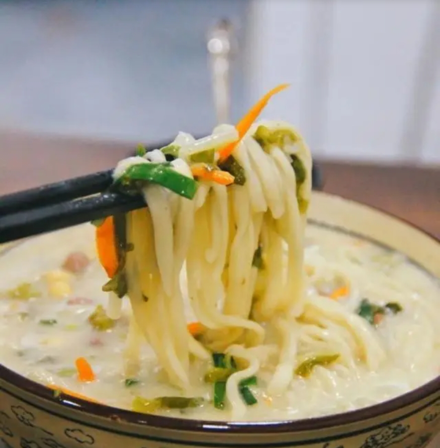 漿面條是洛陽的一種傳統(tǒng)面食,也是洛陽人的家常便飯。漿面條的做法是將面粉用水和成面團(tuán),搟成薄片,切成寬條,放入開水中煮熟。然后將煮好的面條撈出,放入盤中,澆上用雞蛋、豆腐、菠菜等打成的漿汁。最后撒上花生碎、芝麻、蔥花等,就可以食用了。漿面條的特點(diǎn)是面條筋道,漿汁鮮香,營養(yǎng)豐富,適合各種人群。