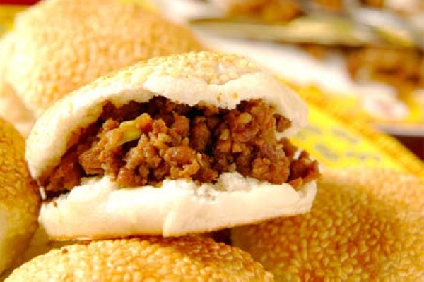 登封芝麻焦蓋燒餅源遠(yuǎn)流長,傳說源于宋代,為了表達(dá)對秦檜的忿恨,登封飯莊用面團(tuán)制成烏龜形,放在火爐里烤,名曰火燒秦檜,后來逐漸演變成了圓形。其特點(diǎn)是:黃焦酥脆,圓形厚墩,表面黃焦,底面干酥,內(nèi)層松軟,焦面上全是脫殼芝麻仁,焦蓋可以揭起,吃起來,酥脆馨香,香味撲鼻,味美異常。