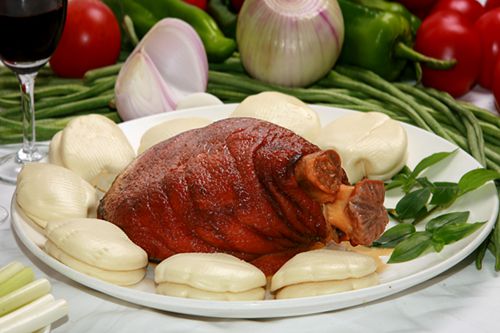 侯集肘子位于舞陽侯集鎮(zhèn),又稱“樊噲肘子”,是舞陽人久負盛名的風(fēng)味小吃,它以豬前腿精心鹵制而成。做法是首選骨頭小、肥肉少、瘦肉多上好的前肘1.3-1.5斤,用蔥姜蒜和紹酒去腥增香,生抽和老抽給肘子上色,再加少許冰糖去油提鮮,最后用小火慢燉、大火收汁等,經(jīng)過復(fù)雜工序做成的侯集肘子肉質(zhì)肥而不膩,口感筋道,食之齒頰生香,風(fēng)味獨特,具有生肌益膚、美容養(yǎng)顏之功效。