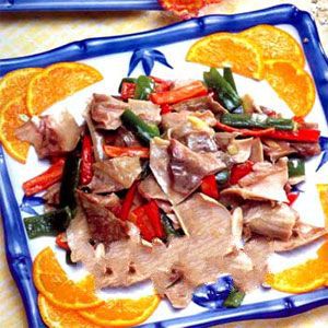信陽(yáng)商城地方風(fēng)味名菜,久為民間喜食。入冬時(shí)節(jié),將2斤以上的鮮魚(yú)刮鱗去臟,洗凈瀝干后切成塊狀,拌入適量食鹽裝進(jìn)鮮毛竹筒內(nèi),密封置于陰涼處。月余后,取出以清湯加佐料煮沸食用,肉質(zhì)鮮嫩、竹香中略帶腐乳味,別具一格。后因鮮毛竹緊缺,民間多改以陶制壇罐作容器,味稍遜。