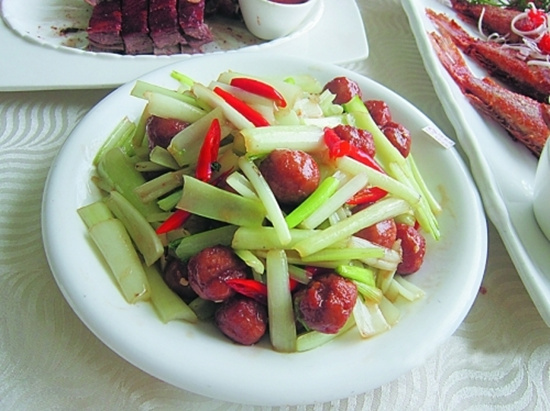 馬蹄學(xué)名荸薺,含有抗癌的有效成分,具有清熱去痰、降血壓和治療大便干硬的功效。菜燴馬蹄丸子,是選用小白菜的莖梗,與馬蹄粒、肉茸搓成小圓球經(jīng)油炸而制作成的馬蹄丸子。一個(gè)不經(jīng)意的混搭菜肴,藏有桂林人民不朽的智慧。菜里乾坤大,壺中日月長(zhǎng)。同時(shí),人們還將馬蹄做成多種菜品,如耳熟能詳?shù)陌谓z馬蹄、馬蹄蒸肉餅、百花釀馬蹄等,甚至還做出馬蹄宴來(lái)。