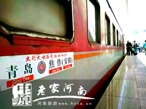 2015年10月2日下午14時30分河南太行大峽谷景區(qū)冠名的“太行大峽谷號”旅游專列從山東青島火車站徐徐開出,550名青島游客在祖國66華誕之際,滿懷激動之情奔向河南安陽太行大峽谷,他們將親身領(lǐng)略巍峨雄偉,以“北雄風(fēng)光”為代表的太行大峽谷的魅力景色。