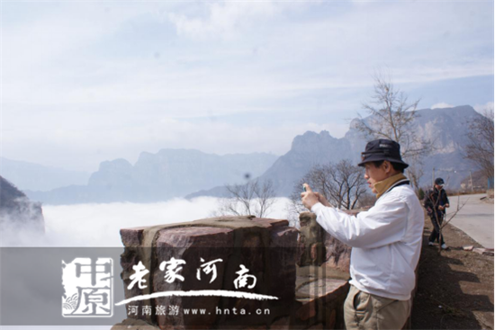 這位韓國游客錄下云海生成的全過程,他將把天界山的云海介紹給家鄉(xiāng)的朋友,讓他們也來目睹中國天界山云海奇觀。