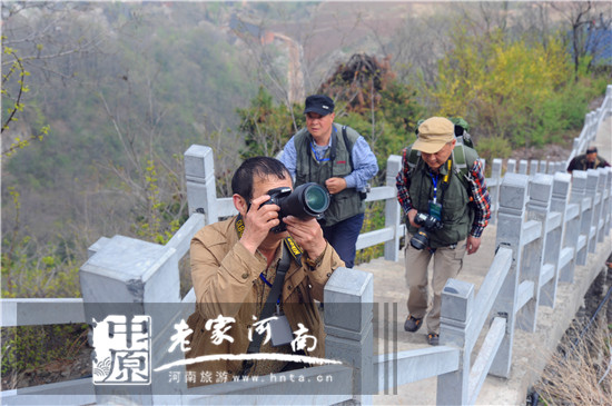 在新鄉(xiāng)市全面提升旅游產(chǎn)業(yè)規(guī);、品牌化、市場(chǎng)化水平和發(fā)展大旅游、鑄造大產(chǎn)業(yè)、不斷加快旅游產(chǎn)業(yè)轉(zhuǎn)型升級(jí)步伐的大形勢(shì)下,為進(jìn)一步展示轎頂山景區(qū)的優(yōu)美風(fēng)光,讓廣大攝影愛好者及游客朋友們親身領(lǐng)略獨(dú)特的太行風(fēng)骨,由新鄉(xiāng)市人民政府、河南省青年攝影家協(xié)會(huì)、河南省高校攝影協(xié)會(huì)主辦,河南省旅游局信息中心、河南省攝影家協(xié)會(huì)旅游系統(tǒng)攝影分會(huì)、新鄉(xiāng)市旅游局、鄭州晚報(bào)、鄭州市攝影家協(xié)會(huì)、新鄉(xiāng)市攝影家協(xié)會(huì)、輝縣市旅游發(fā)展中心、新鄉(xiāng)轎頂山景區(qū)共同承辦了“2016轎頂山景區(qū)全國(guó)攝影大賽活動(dòng)”。河南省旅游局局長(zhǎng)寇武江,河南省旅游局副巡視員潘進(jìn)軍,新鄉(xiāng)市政府副市長(zhǎng)職偉,省旅游局監(jiān)督管理處處長(zhǎng)張建州,新鄉(xiāng)市政府辦公室副主任孫傳勇,新鄉(xiāng)市人大民族僑務(wù)外事委員會(huì)主任孫家順,新鄉(xiāng)市旅游局局長(zhǎng)崔紅,輝縣市人民政府市長(zhǎng)張星吉,省旅游局信息中心工會(huì)主席楊志威,輝縣市委常委、南太行管委會(huì)常務(wù)副主任王建,輝縣市原政協(xié)主席郭清懷,新鄉(xiāng)市旅游局副局長(zhǎng)冀國(guó)強(qiáng),新鄉(xiāng)市體育局副局長(zhǎng)張德君,中國(guó)晚報(bào)攝影學(xué)會(huì)副主席、鄭州市攝影家協(xié)會(huì)主席、鄭州晚報(bào)視覺總監(jiān)河寧,中國(guó)青年攝影發(fā)展共同體副主席、河南省青年攝影家協(xié)會(huì)主席馬靜坡,全國(guó)高校攝影聯(lián)合會(huì)理事、河南高校攝影學(xué)會(huì)常務(wù)副秘書長(zhǎng)郭浩,新鄉(xiāng)市攝影家協(xié)會(huì)會(huì)長(zhǎng)鄭敏銳,輝縣市人大副主任張洪騰,輝縣市政協(xié)副主席宋天順,新鄉(xiāng)南太行旅游集團(tuán)副總經(jīng)理王建新,輝縣市轎頂山旅游開發(fā)服務(wù)有限公司董事長(zhǎng) 趙平生等出席了開幕式。開幕式上,河寧首先宣布了比賽規(guī)則,隨后潘進(jìn)軍,孫傳勇,河寧,馬靜坡,郭浩,鄭敏銳共同啟動(dòng)了大賽。來自省會(huì)及周邊城市的60多位知名攝影師參加了16-17日的采風(fēng)創(chuàng)作活動(dòng)。