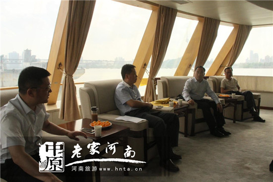 固始縣人民政府副縣長(zhǎng)李小濤、武漢市旅游局市場(chǎng)促進(jìn)處處長(zhǎng)徐鐵柱、副處長(zhǎng)周棟、新怡和集團(tuán)總裁李剛于會(huì)前進(jìn)行深入交流