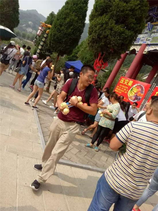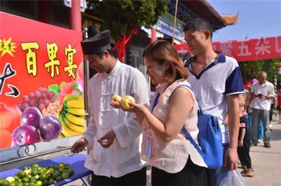 為什么免費(fèi)請(qǐng)大家吃水果。恳?yàn)閲?guó)慶節(jié)期間也是我們五朵山的九月九廟會(huì)啊,這些水果可都是經(jīng)過(guò)道長(zhǎng)誦經(jīng)的供果啊,據(jù)說(shuō)吃了消災(zāi)賜福呢。哦,對(duì)了,這10天里我們還有精彩的演出呢!