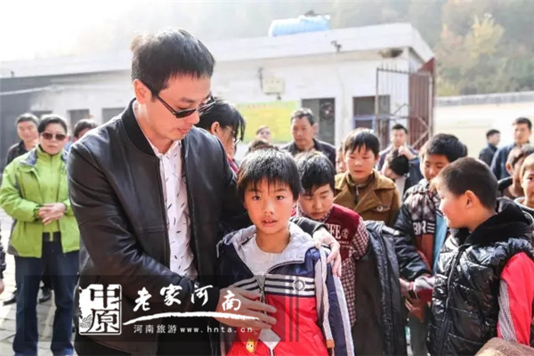 我們愛(ài)心捐贈(zèng)單位淘淘貓童裝皖豫分公司總經(jīng)理葛一杰先生也前來(lái)參加此次活動(dòng),并親自為貧困山區(qū)的孩子們穿上新衣服。
