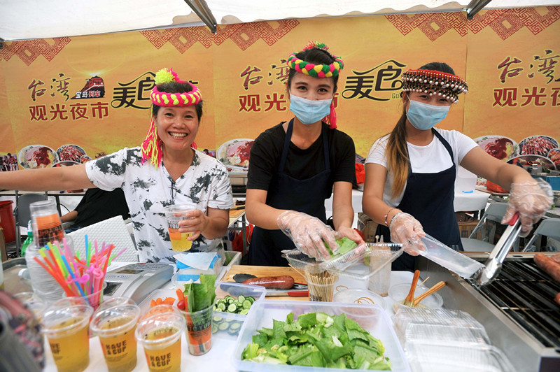 在國際美食展區(qū),來自臺灣的阿美族展商在推銷美食