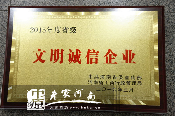 2由中共河南省委宣傳部、河南省工商行政管理局授予清明上河園“2015年度省級文明誠信企業(yè)”榮譽(yù)稱號。