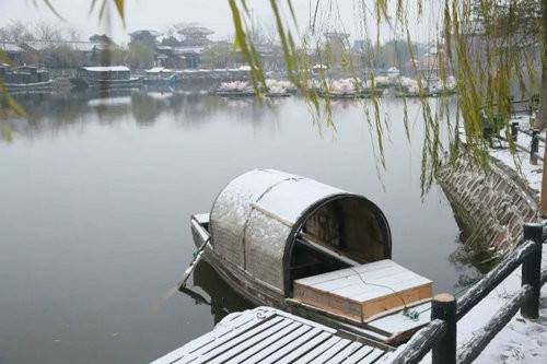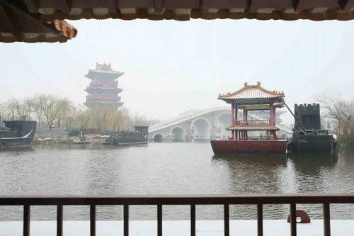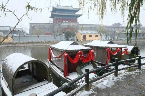 晶瑩的雪花,寧靜的汴河,沐浴在蒼茫天空下。所有的一切,消散了喧囂,抹去了浮華,美得剛剛好。