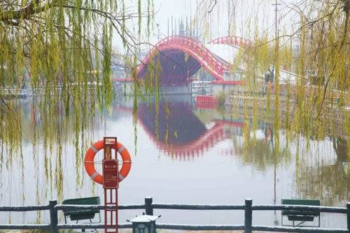 虹橋披上了一層紗,岸邊的柳條也白了枝椏。每一個角度,每一個小景,都讓人怦然心動。